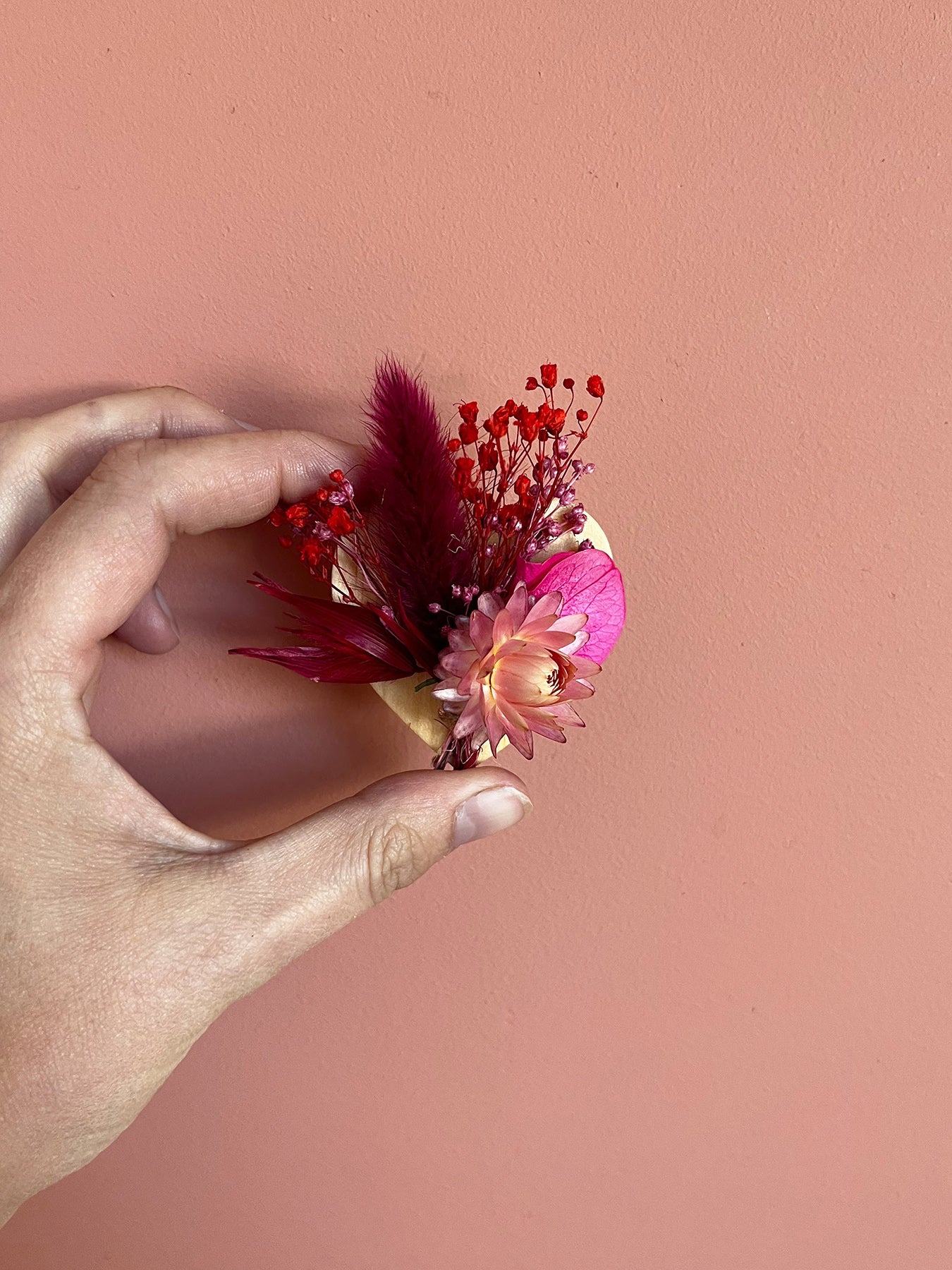 Vous pouvez personnaliser votre magnet en choisissant parmi 8 coloris de bouquets : tons naturels, terracotta, bleus profonds, fuchsia éclatant, et d'autres variations qui s'adaptent à votre univers. Il s’accorde aussi bien avec une ambiance bohème que moderne ou champêtre.